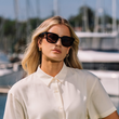 所有款式的墨鏡都適合,因為臉部線條柔和且面部比例均勻,所以幾乎沒有限制。可以隨意選擇你鍾意的款式。