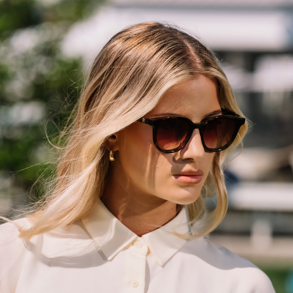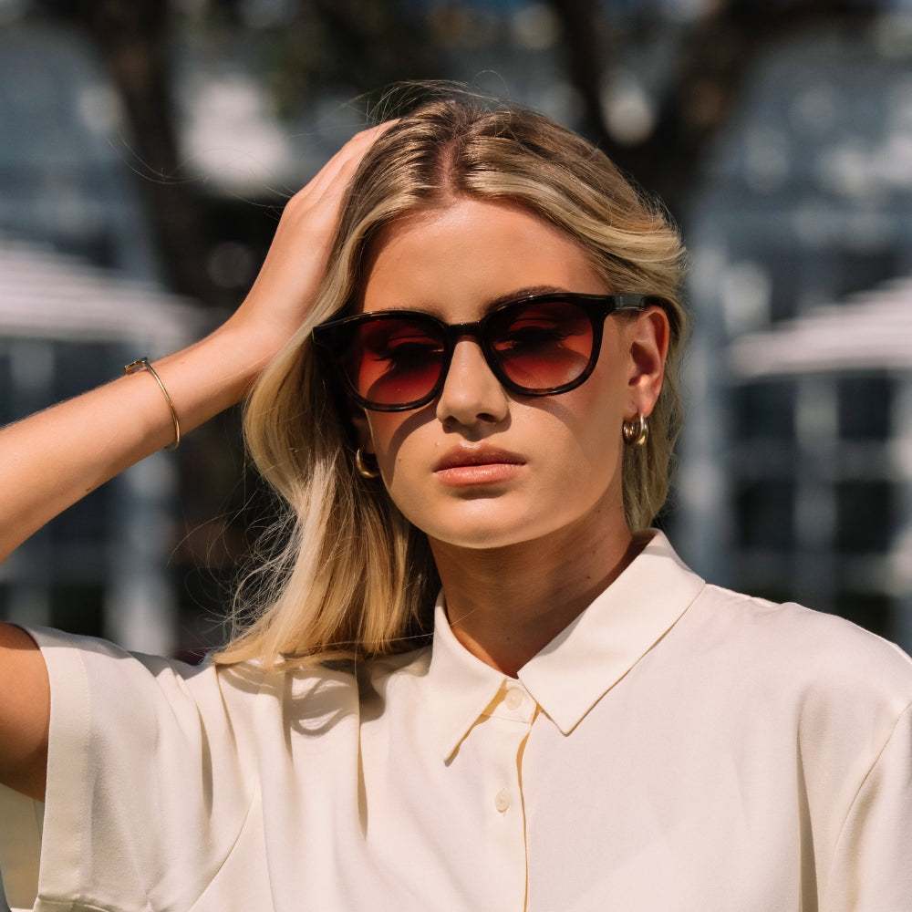 所有款式的墨鏡都適合,因為臉部線條柔和且面部比例均勻,所以幾乎沒有限制。可以隨意選擇你鍾意的款式。