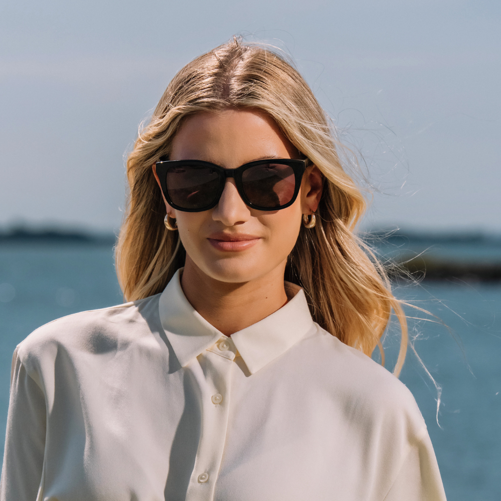 所有款式的墨鏡都適合,因為臉部線條柔和且面部比例均勻,所以幾乎沒有限制。可以隨意選擇你鍾意的款式。